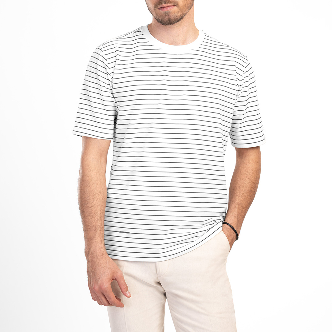 - توضیحات جنسطرح پارچه راه راه/جنس پارچه پنبه لاکرا/استایل اسلیم فیت/یقه گرد/آستین کوتاه/کد محصول 300/56