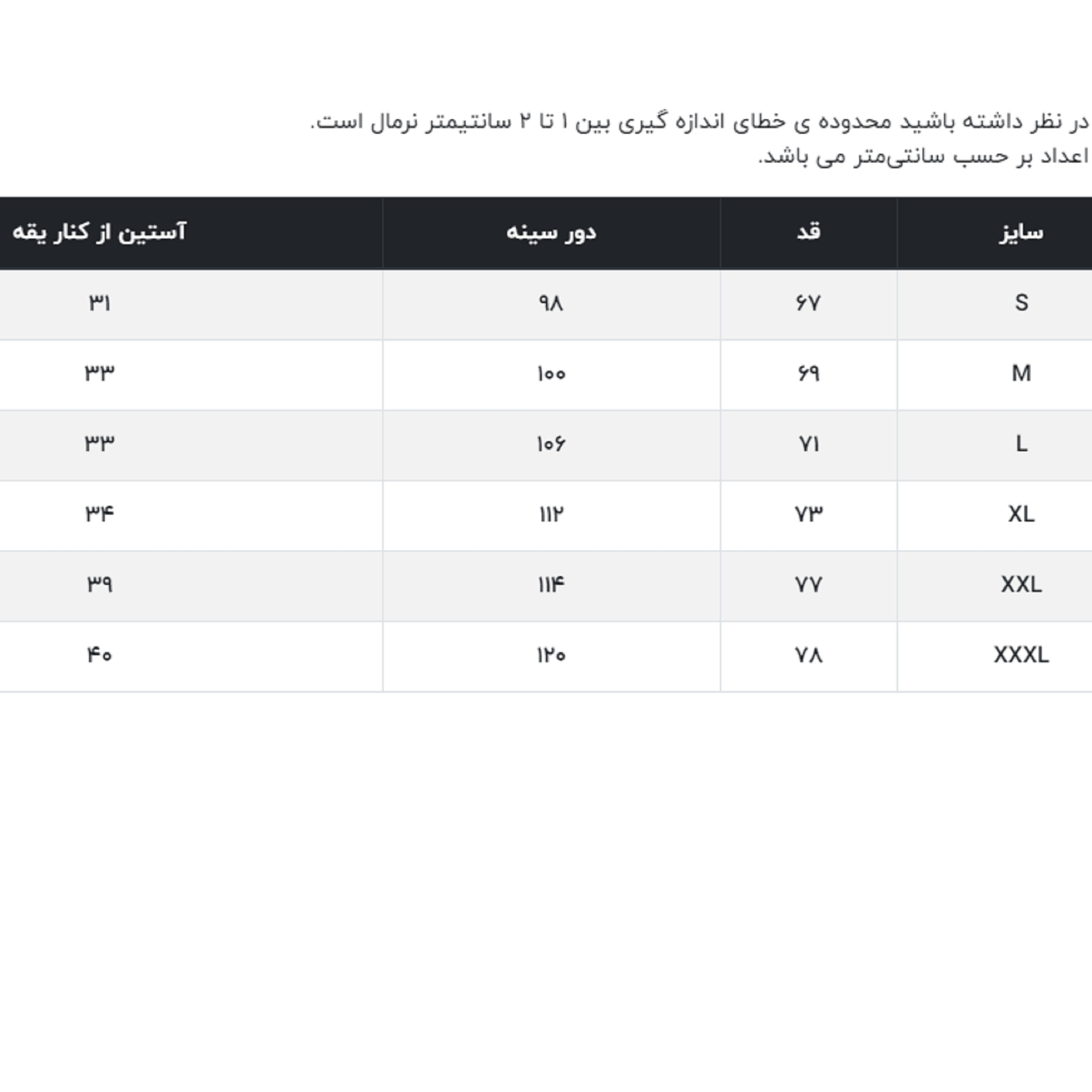 قدلباس: برای سایز L، در حدود 71 سانتی متر است.