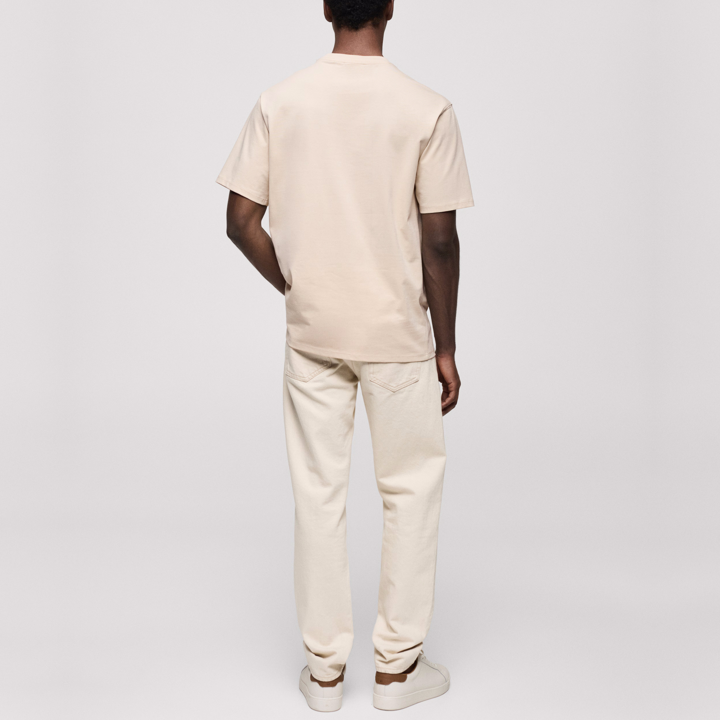 - جزئیاتتیشرت یقه گرد آستین کوتاه مردانه به رنگ بژ دارای طرح نوشته بر روی سینه دارای فرم معمولی و قد تا روی باسن (REGULAR FIT) تهیه شده از الیاف نخی با کیفیت و لطیف و ضد حساسیت مناسب برای استفاده روزمره و ورزشی مدل در عکسها با قد 185 سانتیمتر سایز M را پوشیده است جهت انتخاب سایز مناسب به جدول راهنمای سایز در عکسها مراجعه نمایید