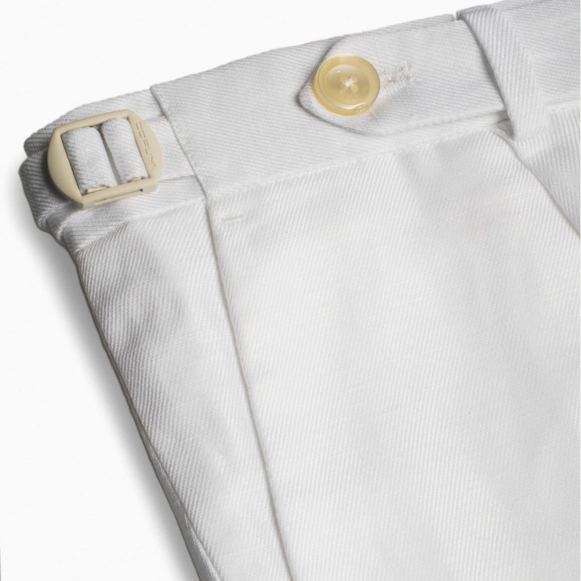 شلوار پارچه ای، دارای سگک، تک پیله، پیش کار تک دکمه، دارای بند کمر جهت استفاده از کمربند/استایل Comfort-Fit