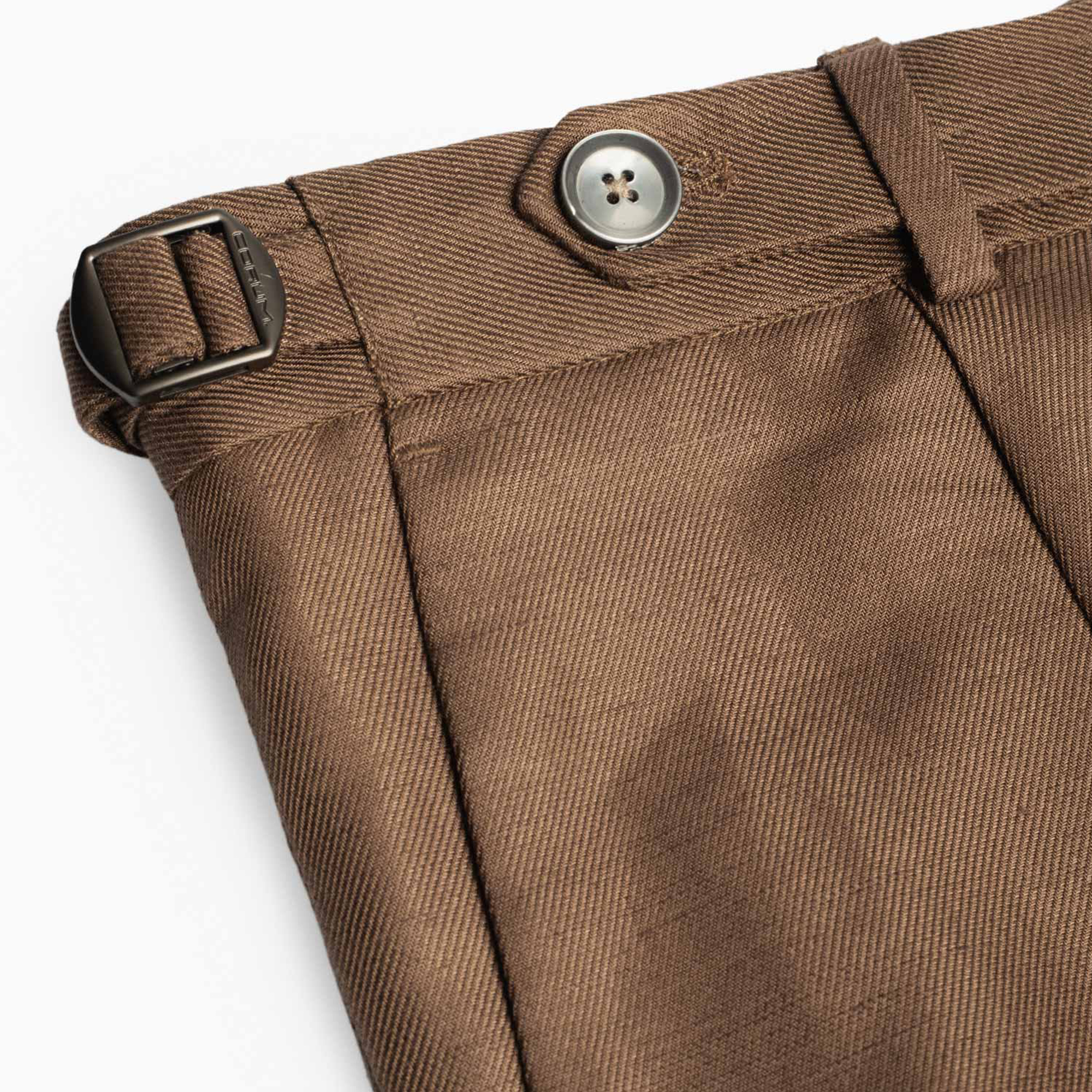 شلوار پارچه ای، دارای سگک، تک پیله، پیش کار تک دکمه، دارای بند کمر جهت استفاده از کمربند/استایل Comfort-Fit