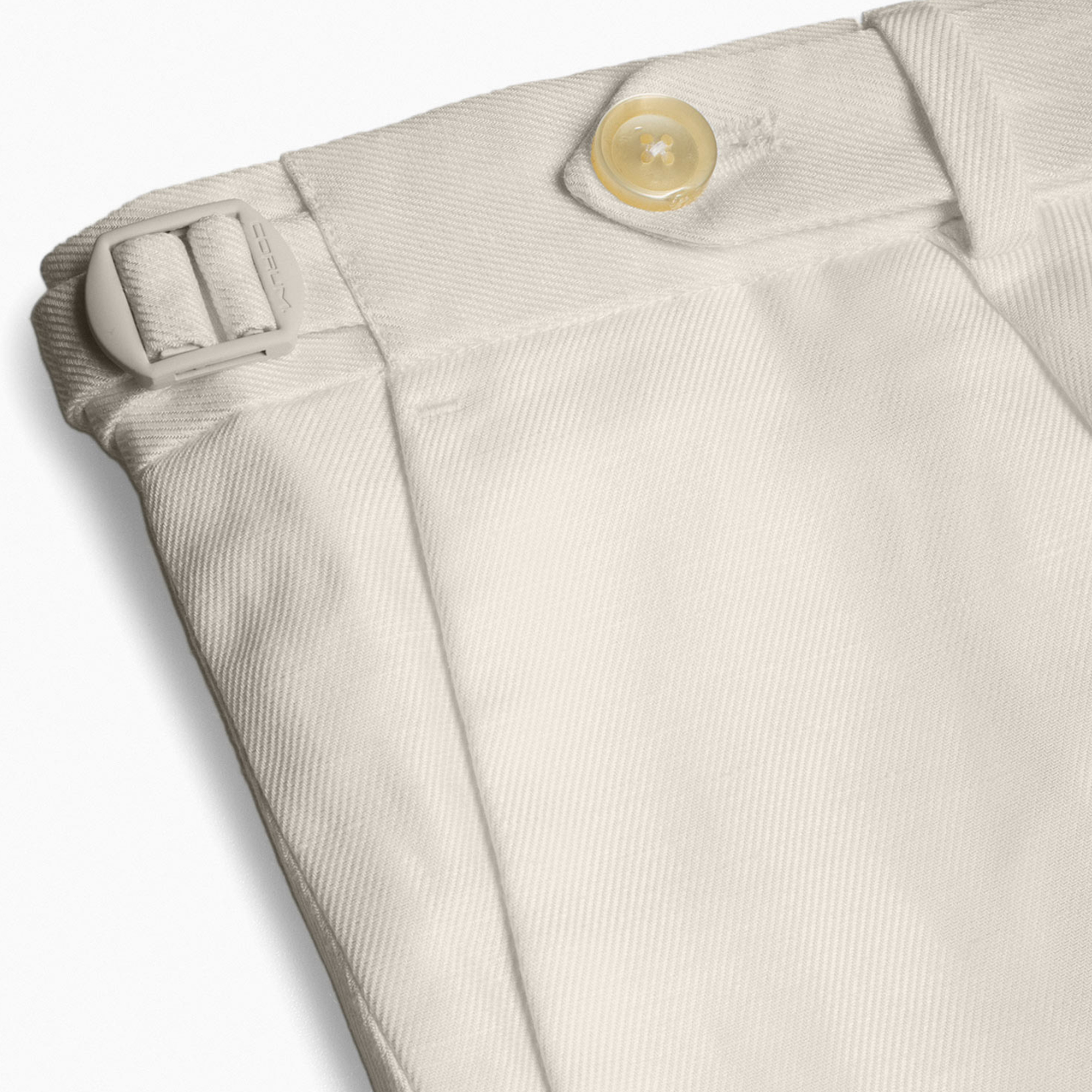شلوار پارچه ای، دارای سگک، تک پیله، پیش کار تک دکمه، دارای بند کمر جهت استفاده از کمربند/استایل Comfort-Fit