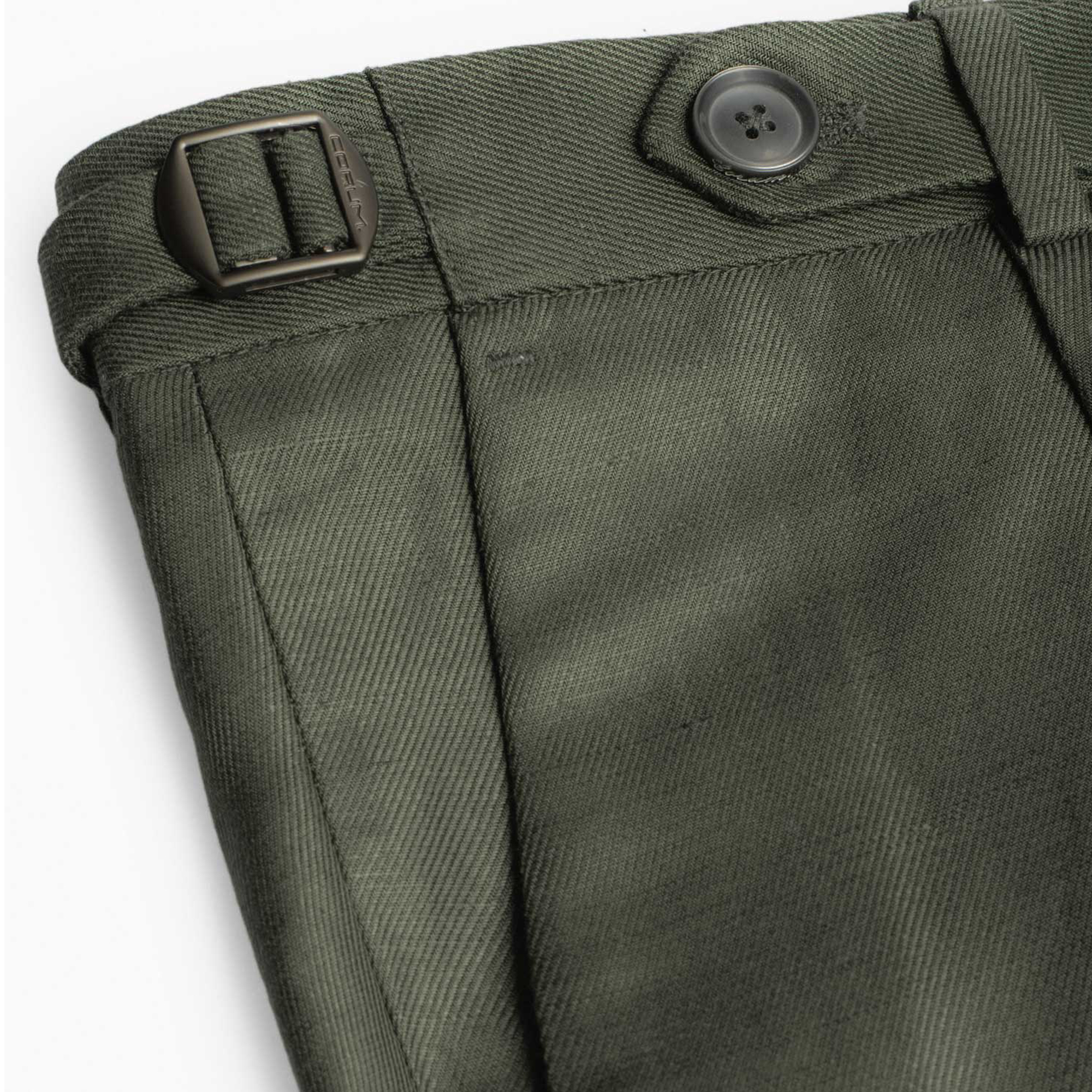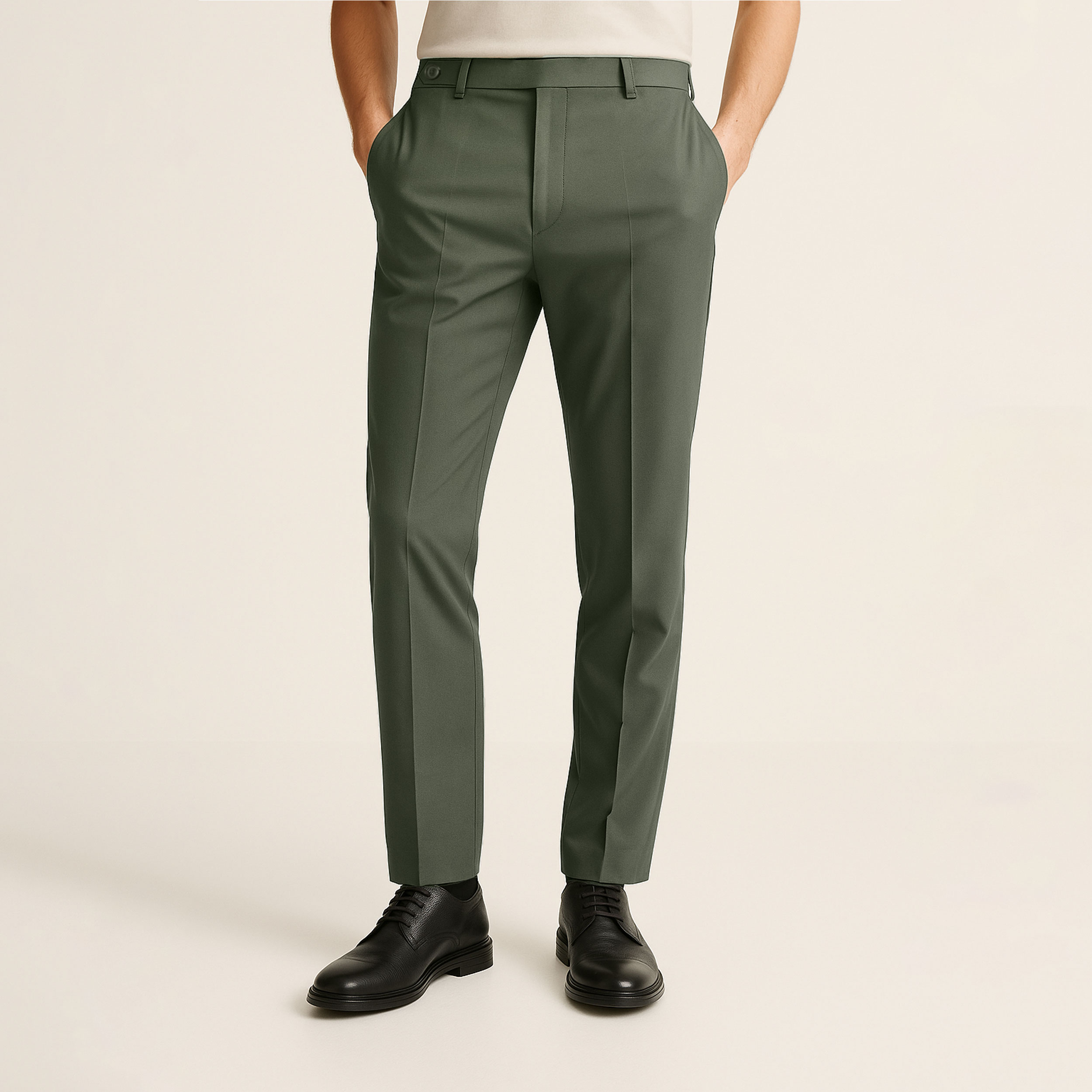 شلوار پارچه ای، دارای سگک، تک پیله، پیش کار تک دکمه، دارای بند کمر جهت استفاده از کمربند/استایل Comfort-Fit