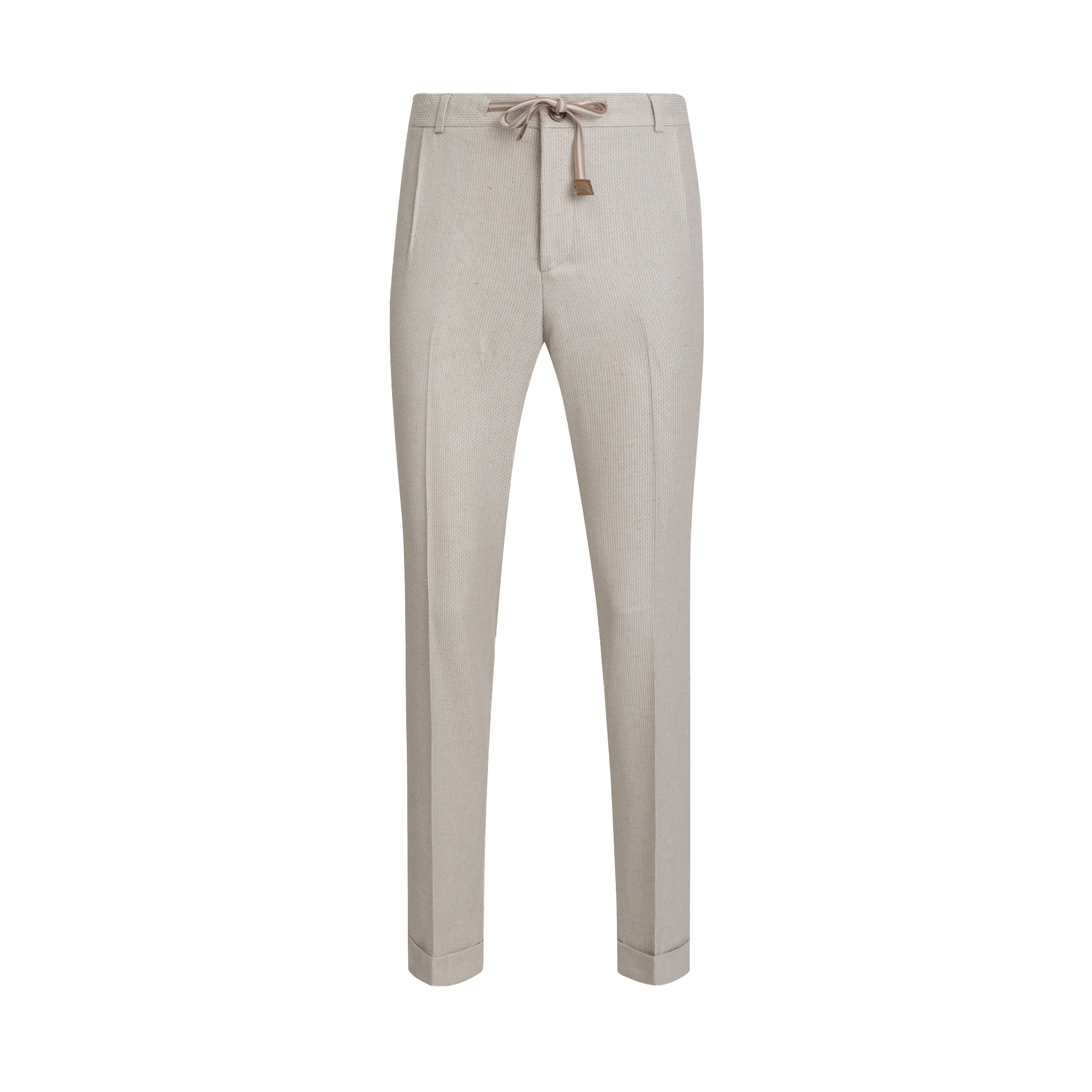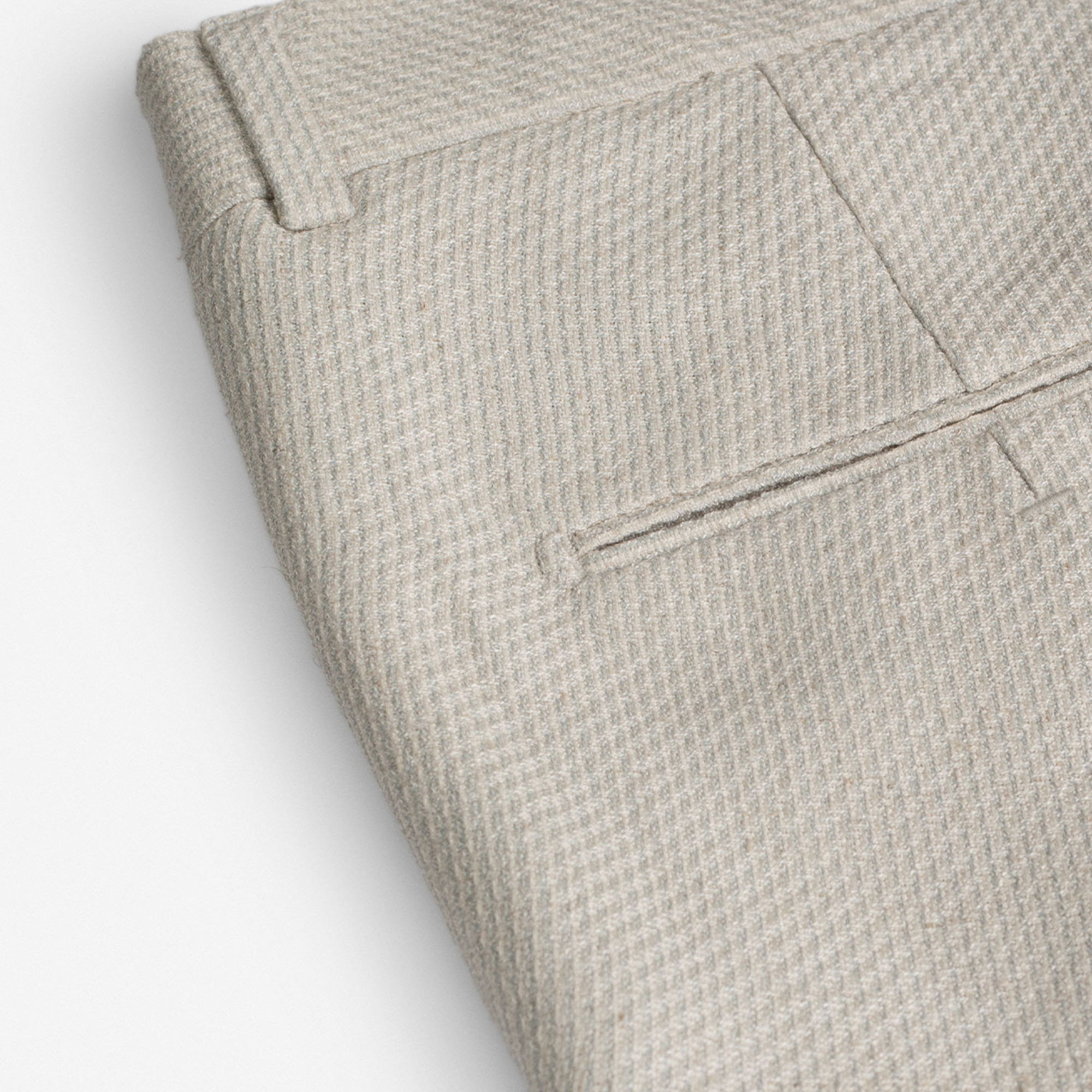 - جزئیاتشلوار پارچه ای، پیش کار تک دکمه، دارای کمربند جهت فیت کردن دور کمر، دمپا دوبل پاکتی/استایل Comfort-Fit