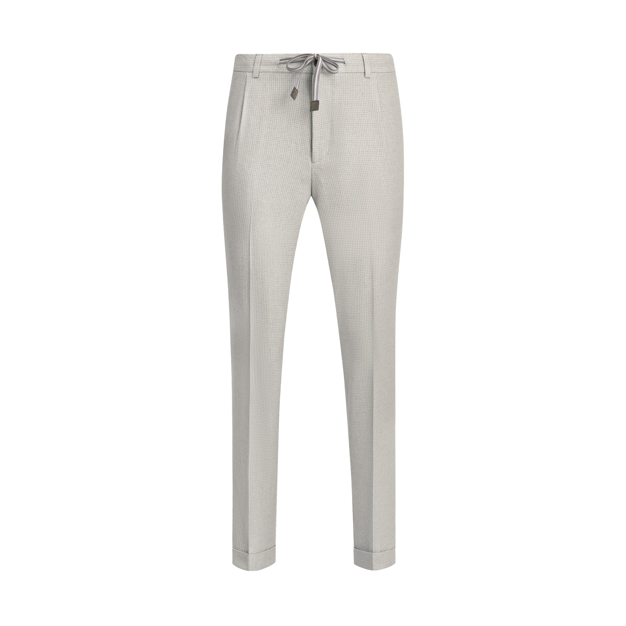 شلوار پارچه ای، پیش کار تک دکمه، دارای کمربند جهت فیت کردن دور کمر، دمپا دوبل پاکتی/استایل Comfort-Fit