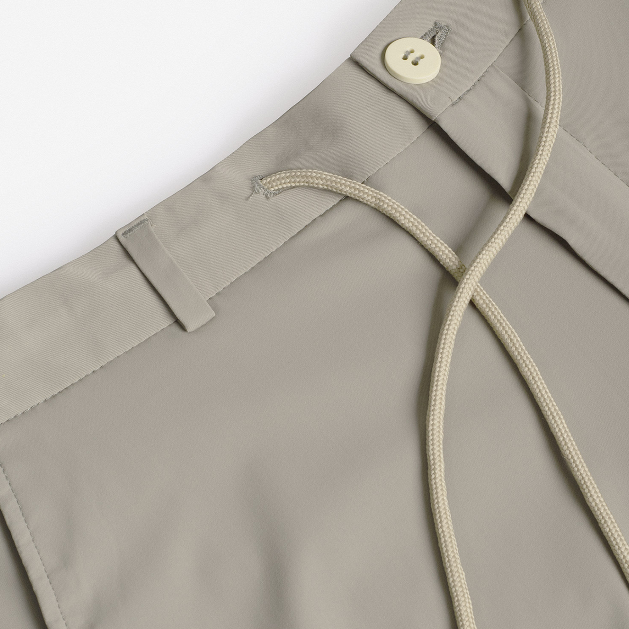 شلوار پارچه ای، پیش کار تک دکمه، دارای کمربند جهت فیت کردن دور کمر، دارای کشبافت در پشت کمر/استایل Slim-Fit