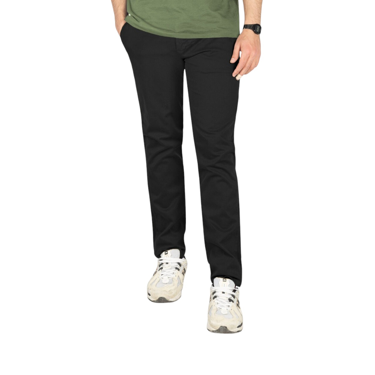 این شلوار از جنس پارچه ی کتان، که یکی از بهترین پارچه ها برای تولید لباس است، می باشد. مدل شلوار، راسته می باشد. با زیپ و دکمه بسته می شود و دارای و دو جیب در جلو و دو جیب در پشت است.
