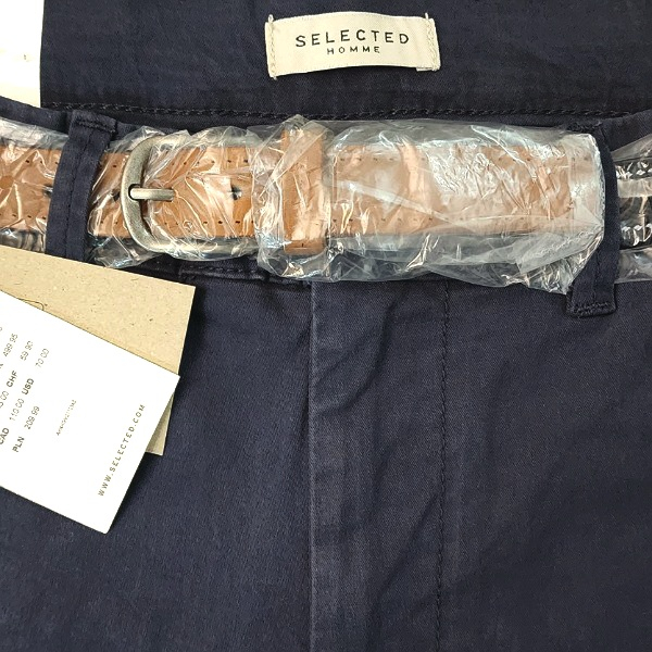 - جزئیاتشلوار کتان مردانه سلکتد دانمارک مدل 16065706 مناسب برای استفاده روزمره و مهمانی .دارای فاق متوسط و فرم اسلیم فیت (SLIM FIT) بوده وپارچه شلوار به رنگ آبی تیره است و تهیه شده از : 98% نخ پنبه و 2% الاستین میباشد که در نتیجه باعث استحکام بیشتر پارچه آن شده .این شلوار با دکمه و زیپ بسته می شود و دارای پل برای بستن کمربند است .بهمراه این شلوار یک عدد کمربند چرم و الیاف نخ رایگان میباشد دارای دو جیب در جلو و دو جیب در پشت .سفارش اروپا بوده و کات لیبل شده (لیبل بریده شده) و اوتلت نمیباشد.