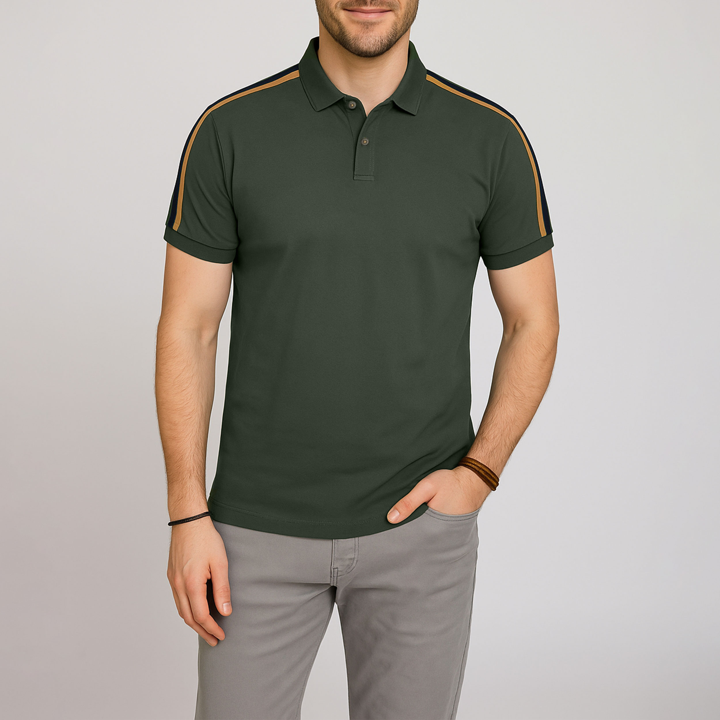 یقه ی مردانه به همراه دو دکمه مخفی و طرح ساده همراه دو خط بر روی شانه با کیفیت بر روی آن از دیگر ویژگی های این محصول است. مناسب تمامی فصول