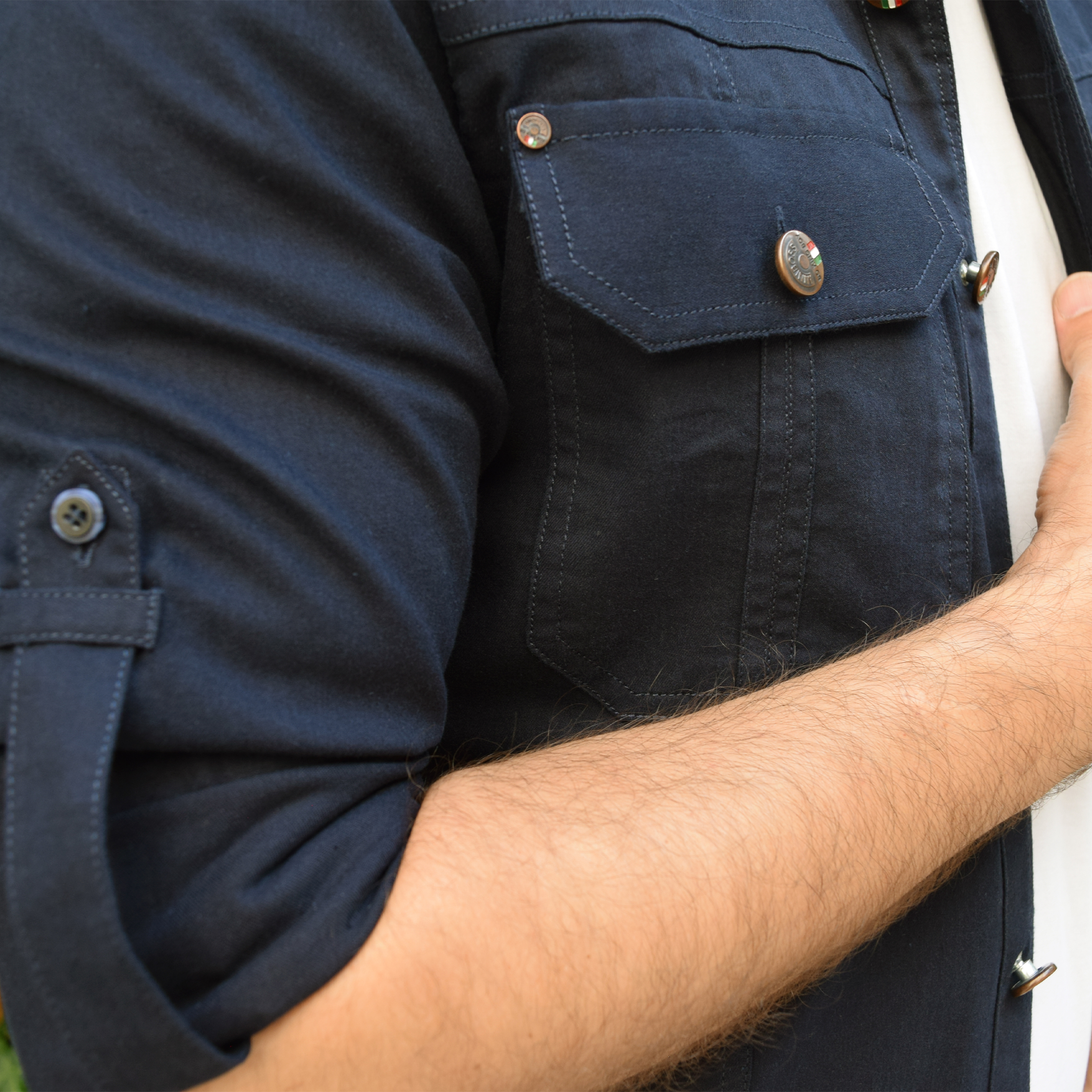 رای بالا نگه داشتن آستین تگ آستین تعبیه شده است. در قسمت سرشانه پاگون داشته و دارای دو جیب می باشد. جنس پارچه نسبتاْ نازک و برای همه فصول مناسب است.