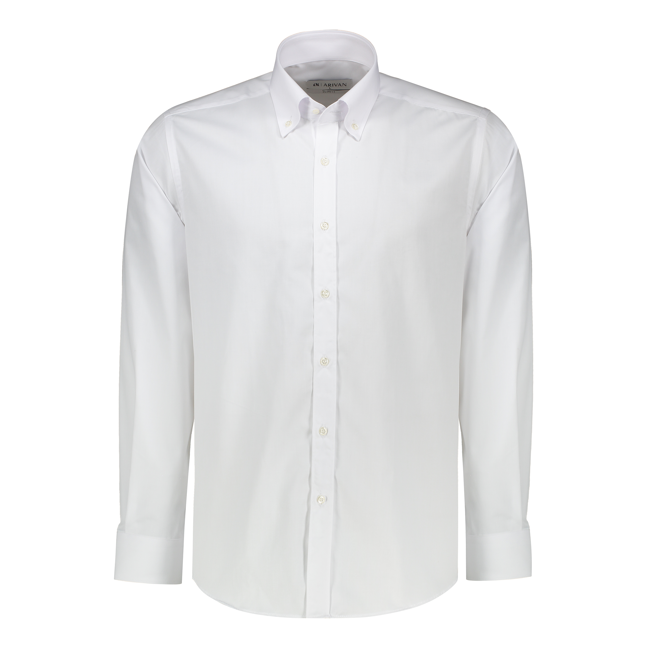 پیراهن آستین بلند یقه برگردان مردانه آریوان مدل کج راه یقه دکمه دار FS231 رنگ سفید