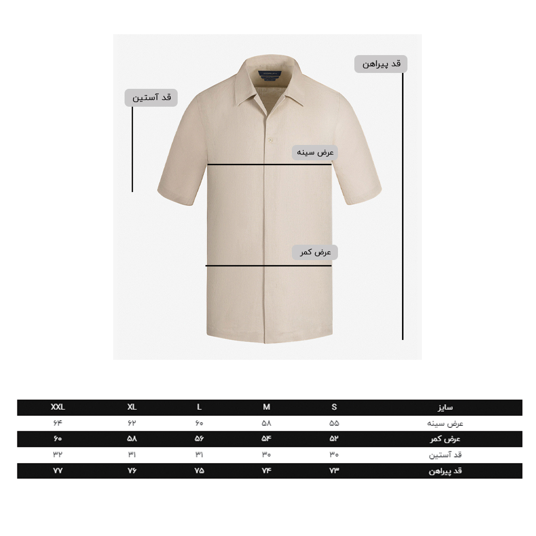 پیراهن مردانه آستین کوتاه پارچه تهیه شده از 100% الیاف لینن استایل Relax-Fit خنک و تنفس پذیر ثبات رنگ در شستشو
