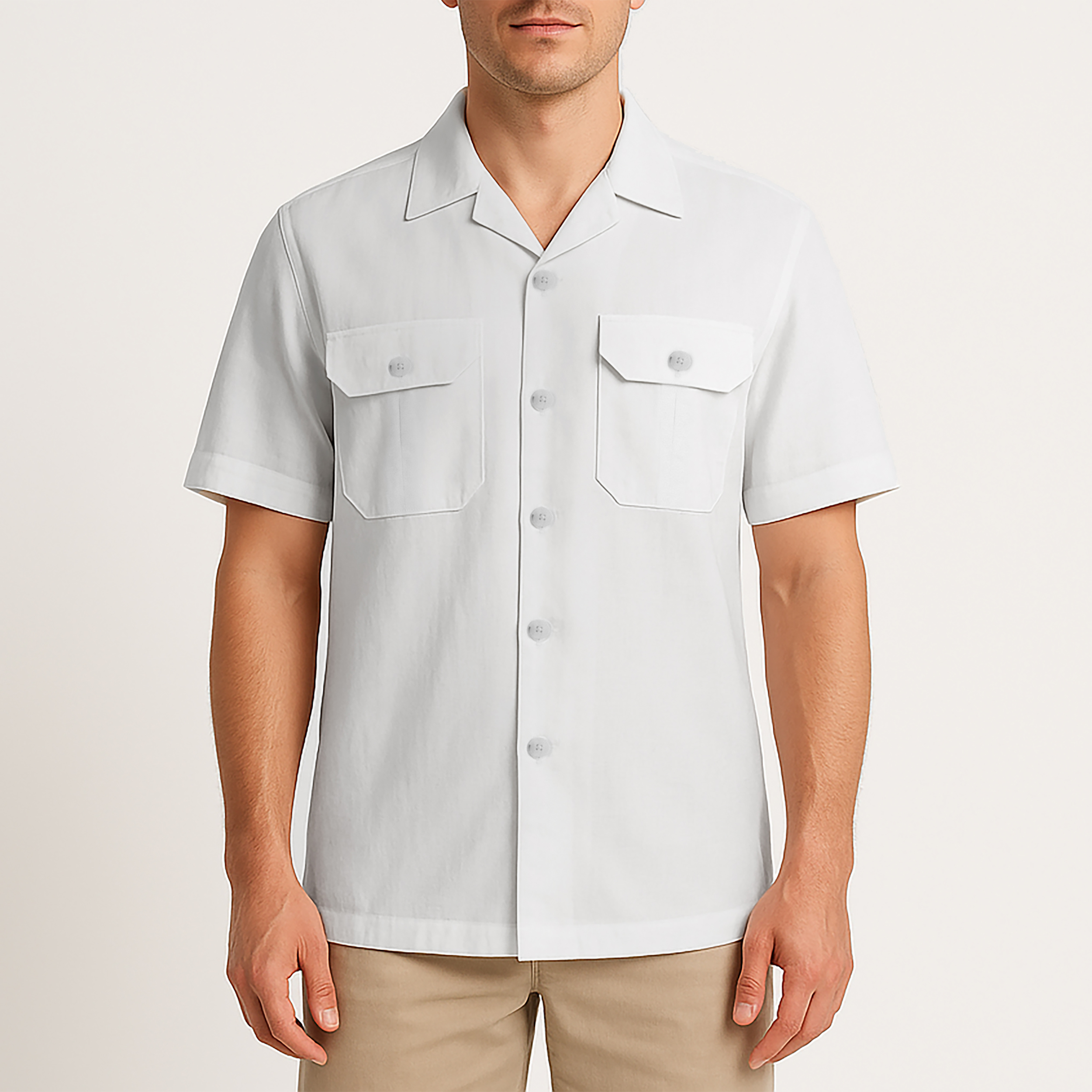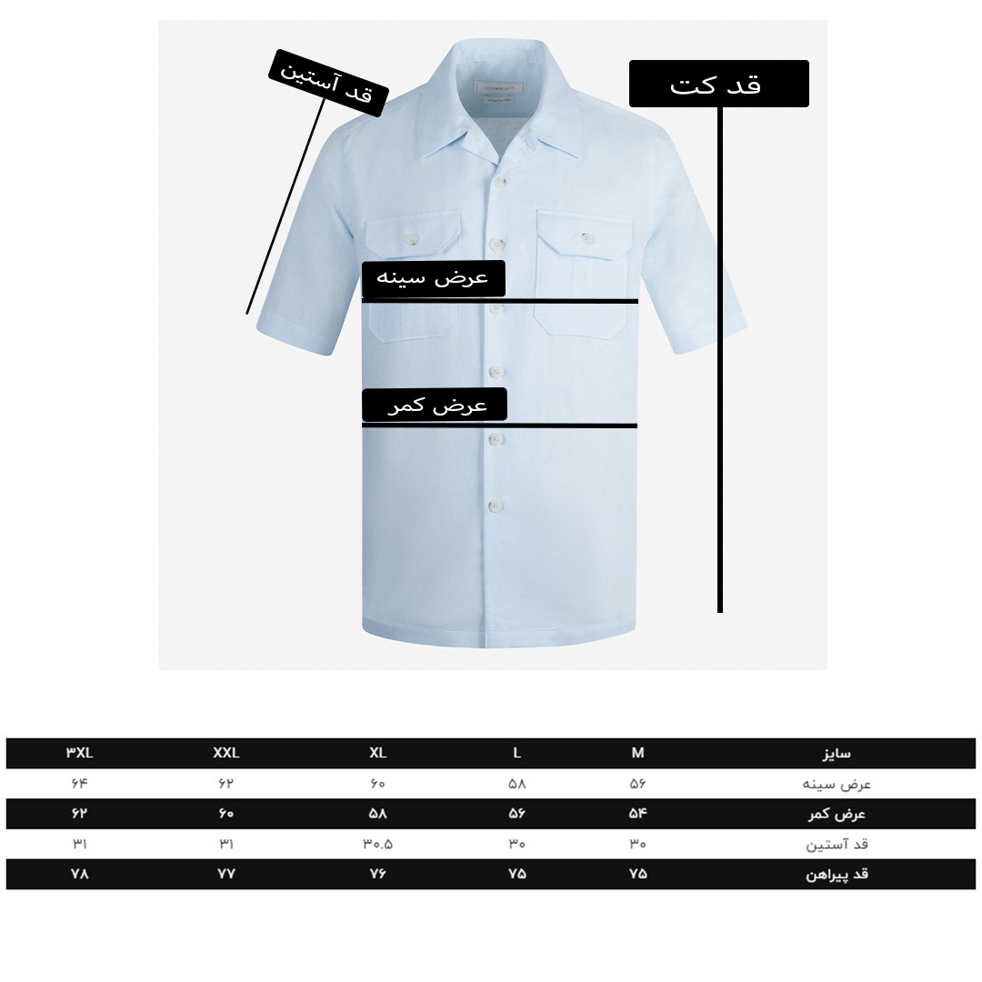 پیراهن مردانه آستین کوتاه پارچه تهیه شده از ۱۰۰٪ الیاف لینن استایل Comfort-Fit دارای دو جیب روی سینه خنک و تنفس پذیر ثبات رنگ در شستشو