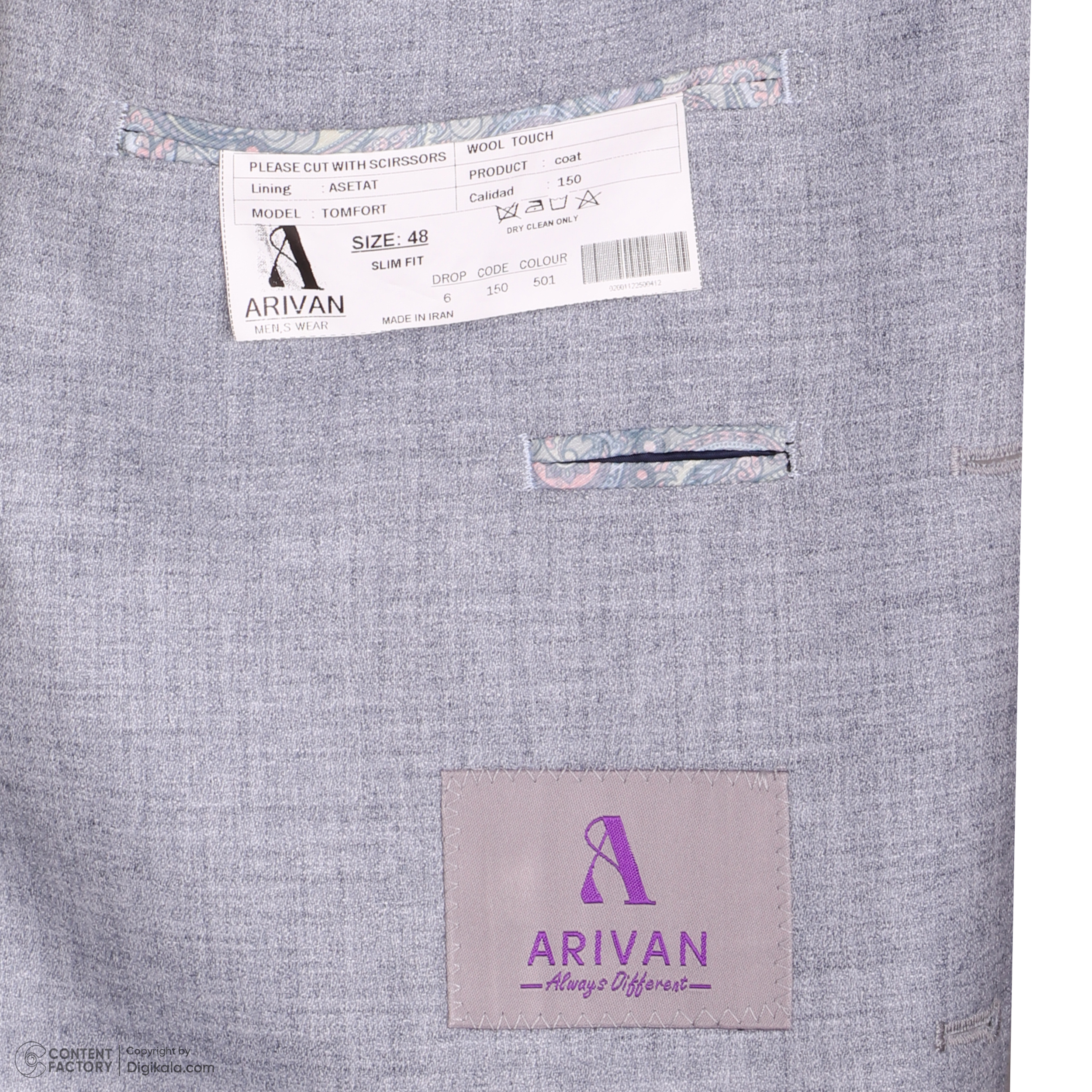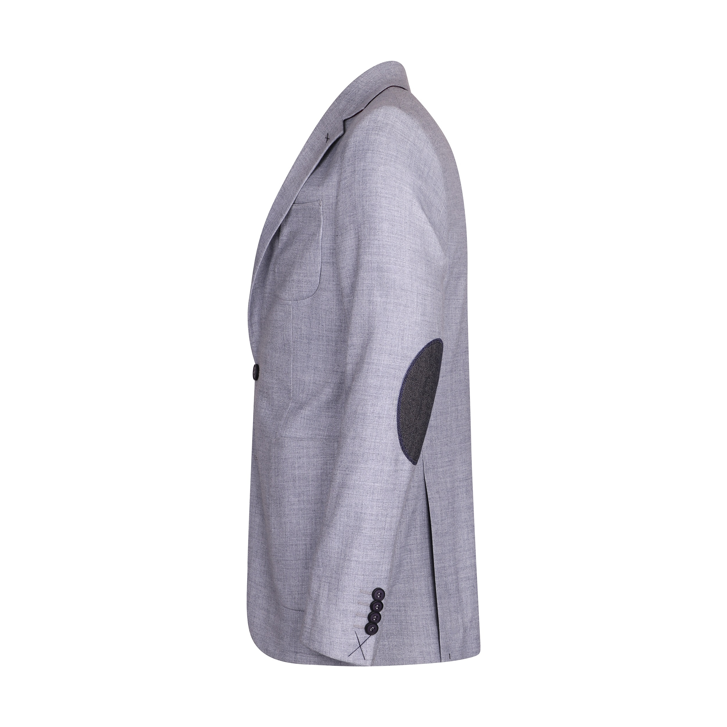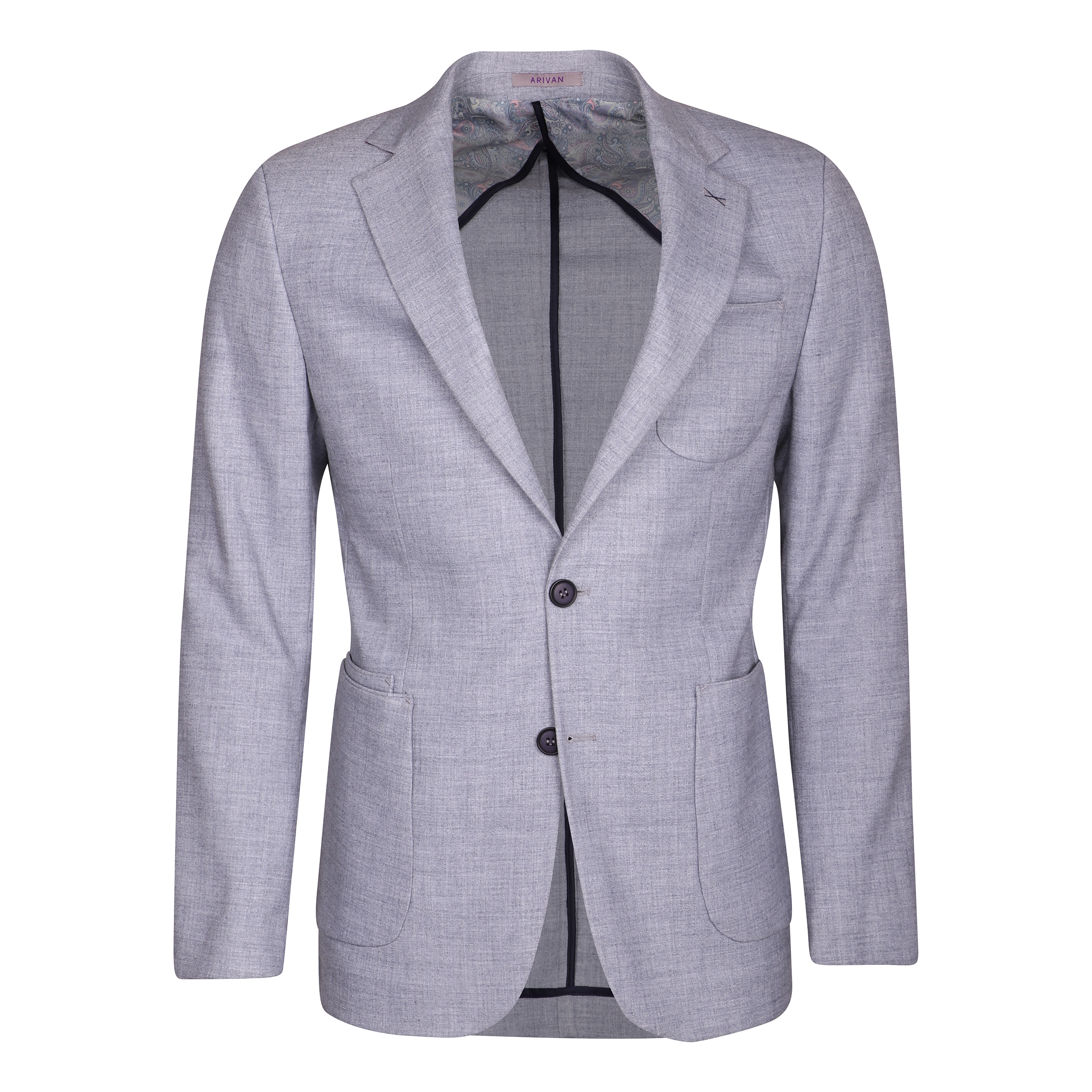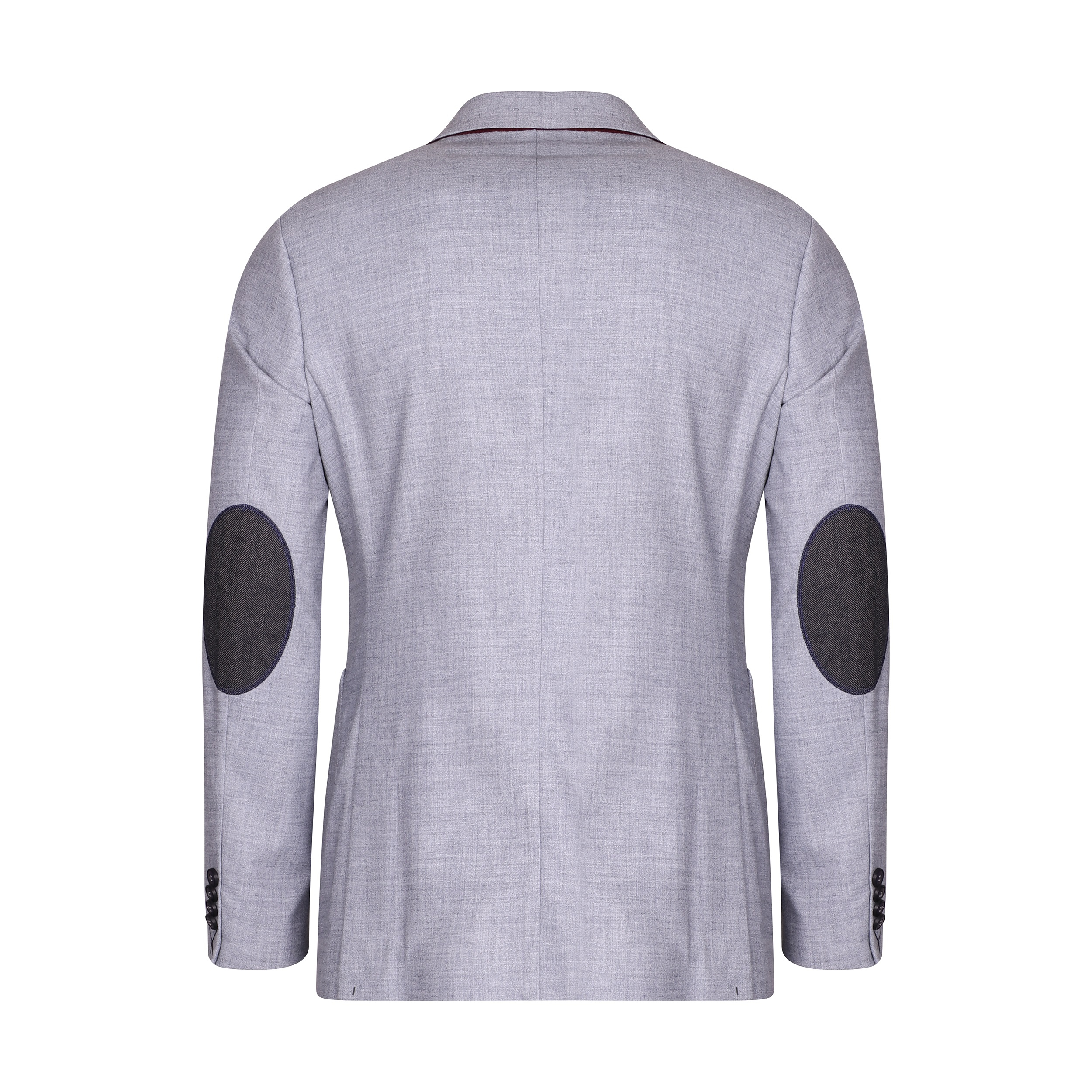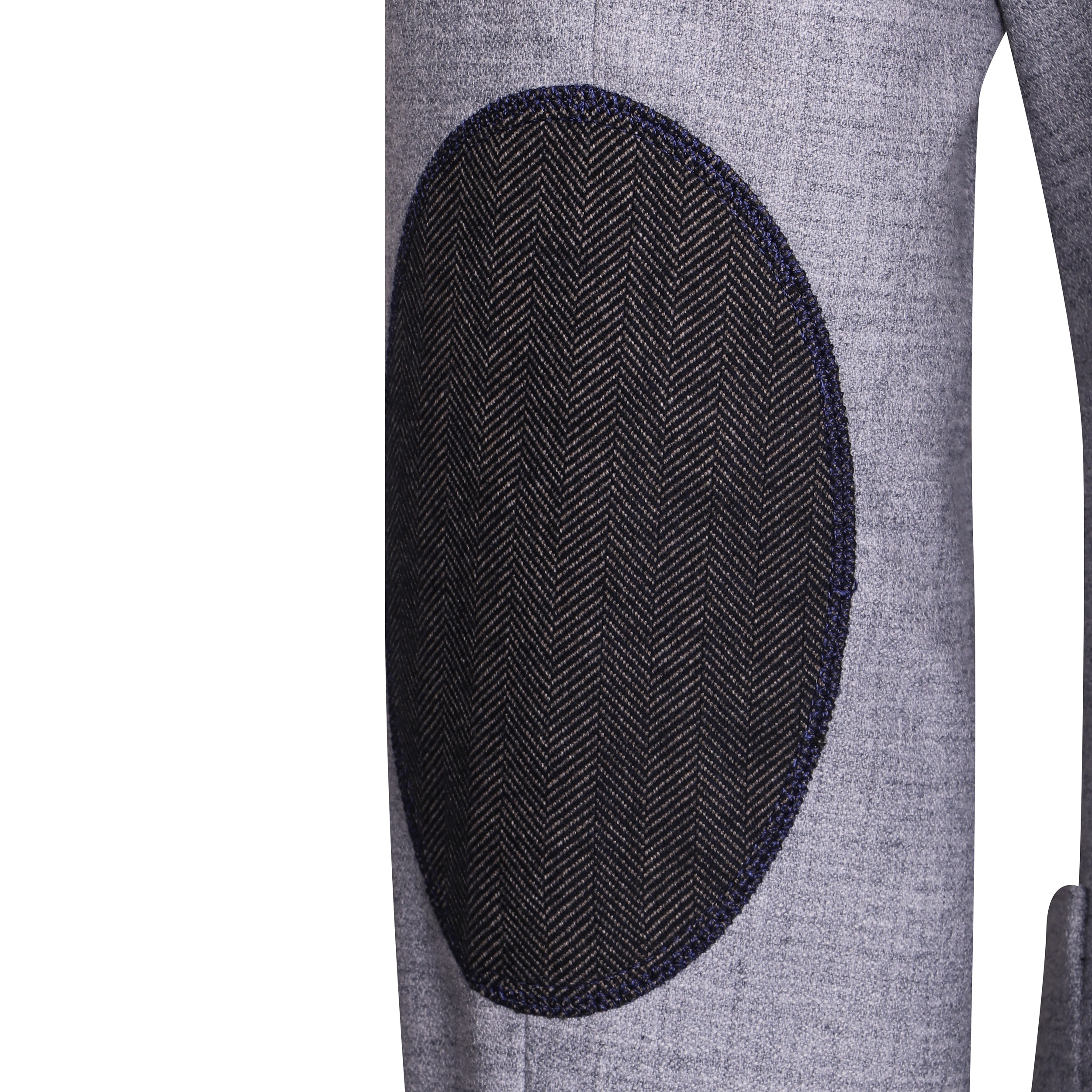 - جزئیاتیقه انگلیسی دو دکمه دارای وصله پشت آرنج نیمه آستر سه جیب پاکتی در جلو، سه جیب مخفی در داخل