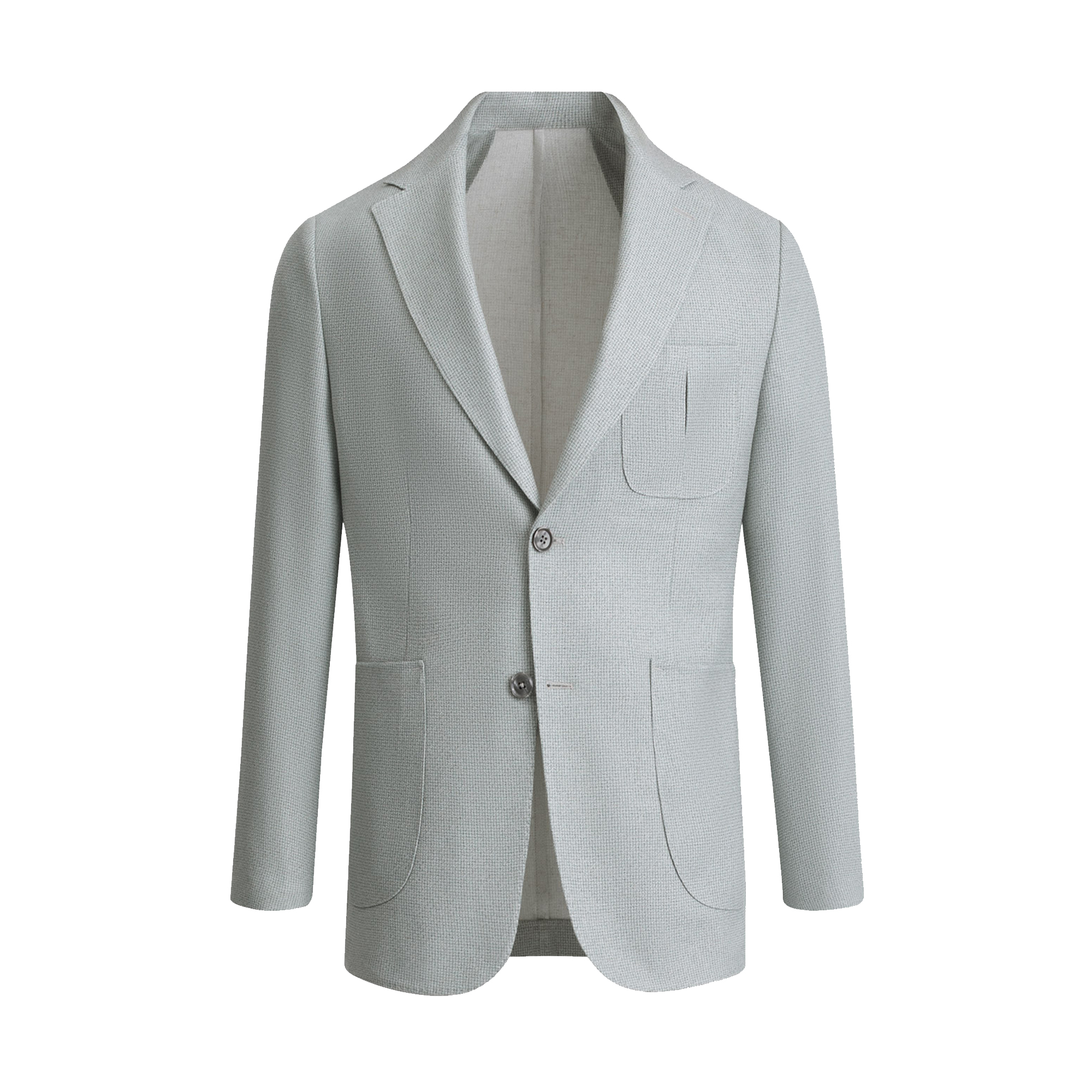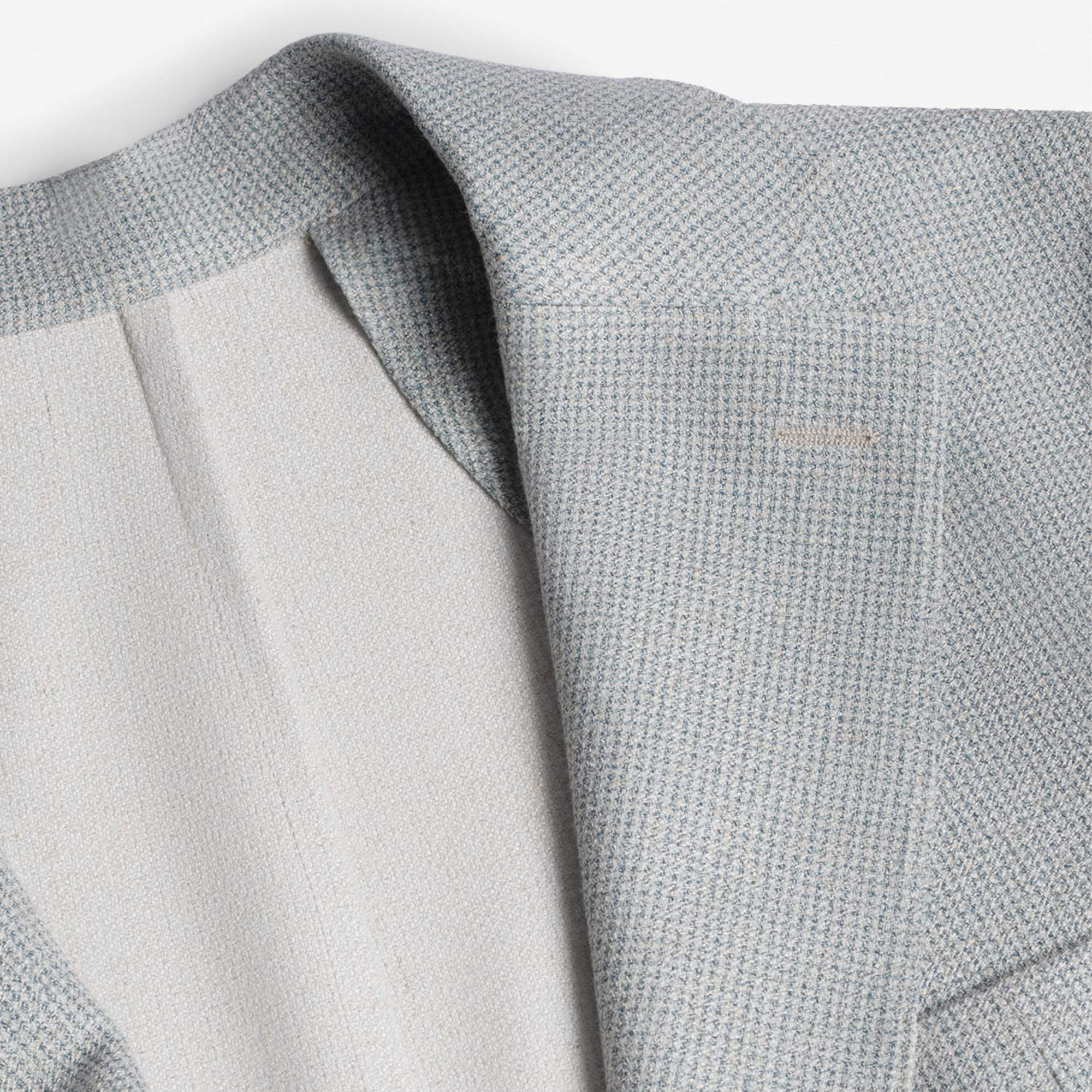 کت دو دکمه، دو چاک در پشت، دارای دو جیب پاکتی و یک جیب روی پیش سینه جهت استفاده از پوشت، بدون آستر/استایل Drop-6