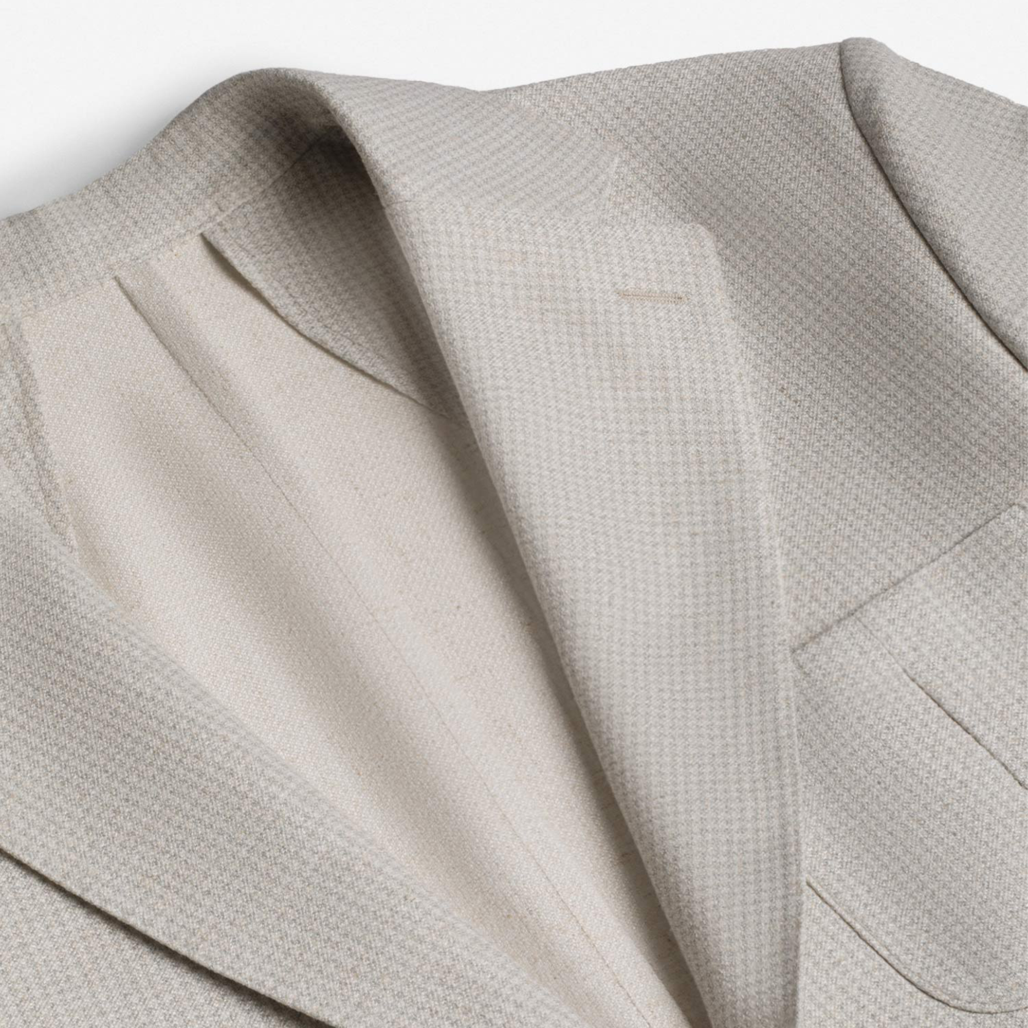 کت دو دکمه، دو چاک در پشت، دارای دو جیب پاکتی و یک جیب روی پیش سینه جهت استفاده از پوشت، بدون آستر/استایل Drop-6